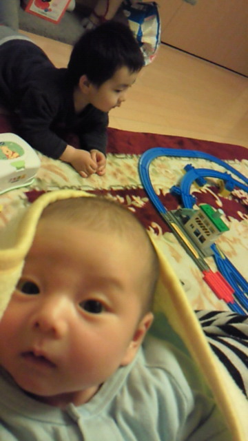 ゆうごが起きてからは一緒にプラレールで遊んでくれました。