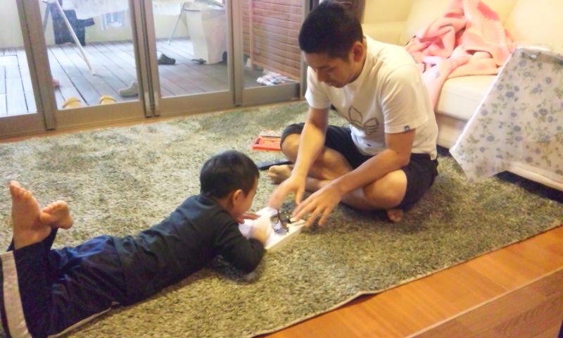 この日、私とゆうごだけで遠足に行ったので、りさはパパとお留守番。
