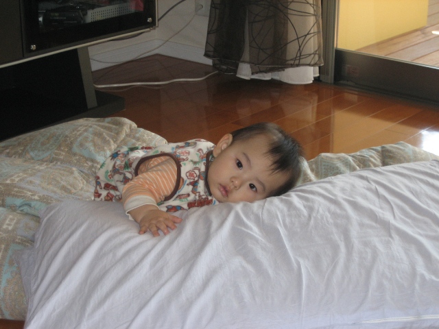 遊ぶ元気もなく、ふとんに倒れこむような動き・・・