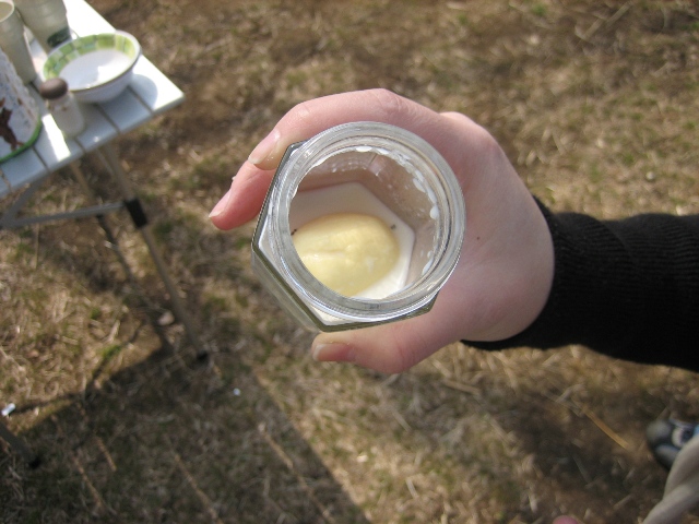 薄い黄色っぽくなって、豆腐のかすのようなものがたくさん!