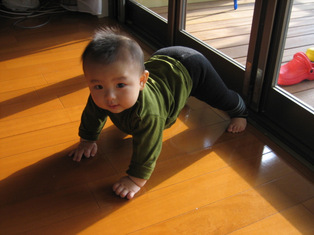 最近では、手とひざで支える、いわゆる「はいはい」のスタイルになることも多く、時には手と足で支えていることも。