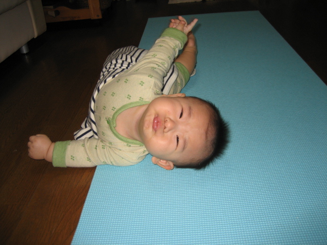 ゆうごはもちろん歩けないので、「多目的室」なるお部屋でおもちゃで遊びました
