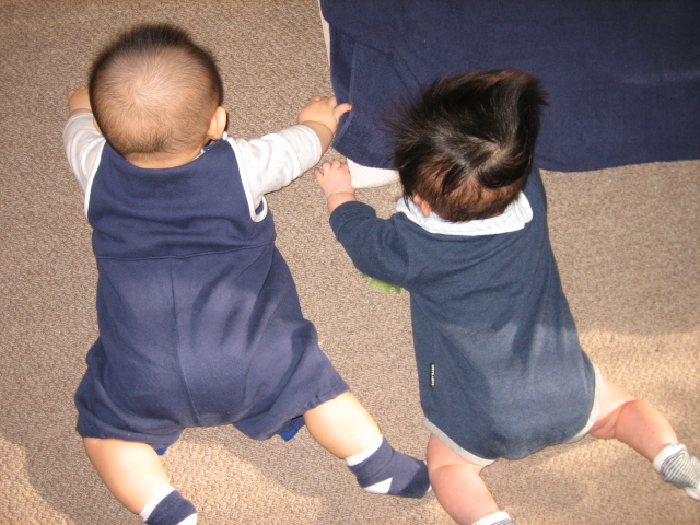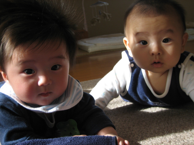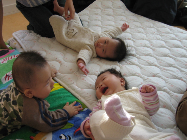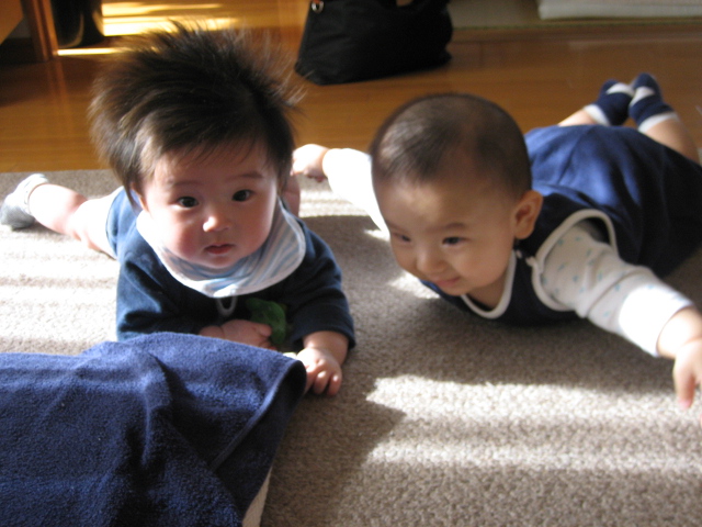 二人とも寝返りしたり、泣いてみたり、寝てみたり・・・