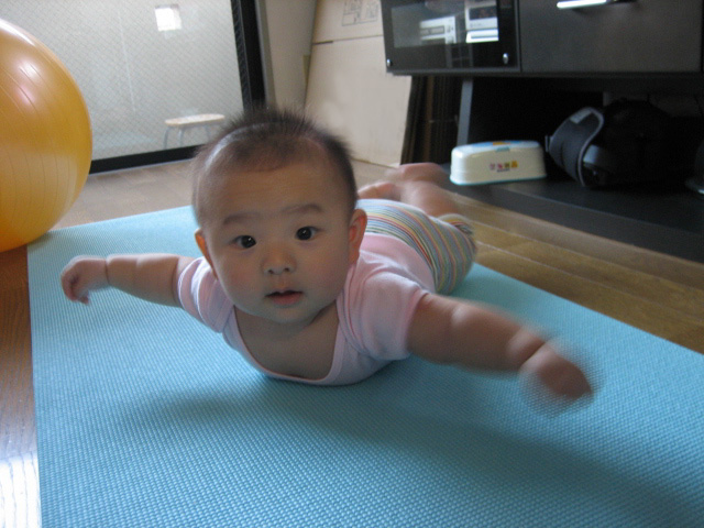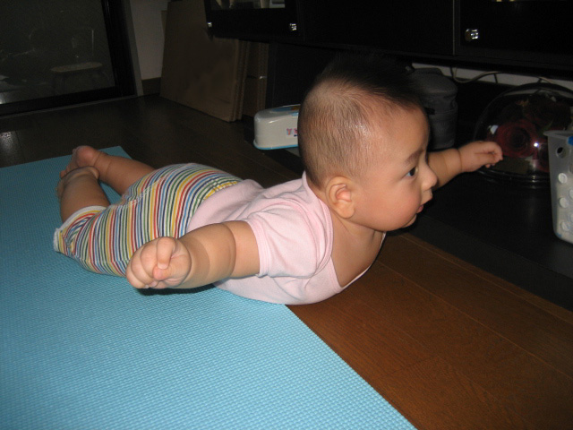 こんなかんじでうつ伏せにの状態で、うでを飛行機みたいにして遊んでます