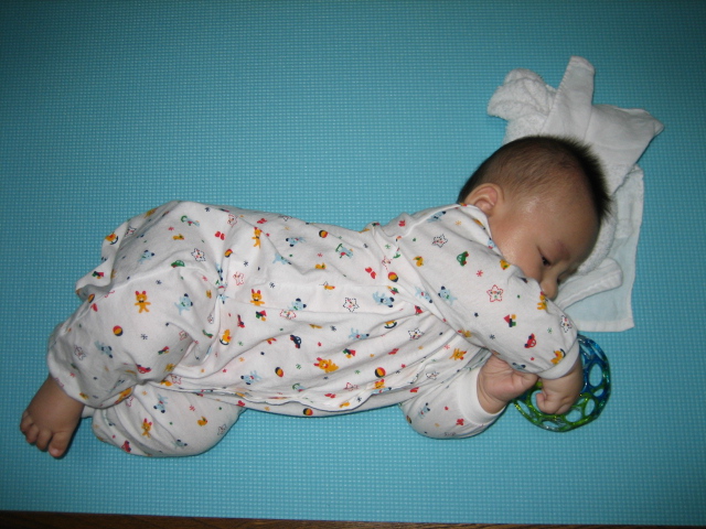 ゆうごより2週間、3週間さきに産まれたベビたちの「本当にもうすぐ寝返りするぞ~」っていう姿を見て