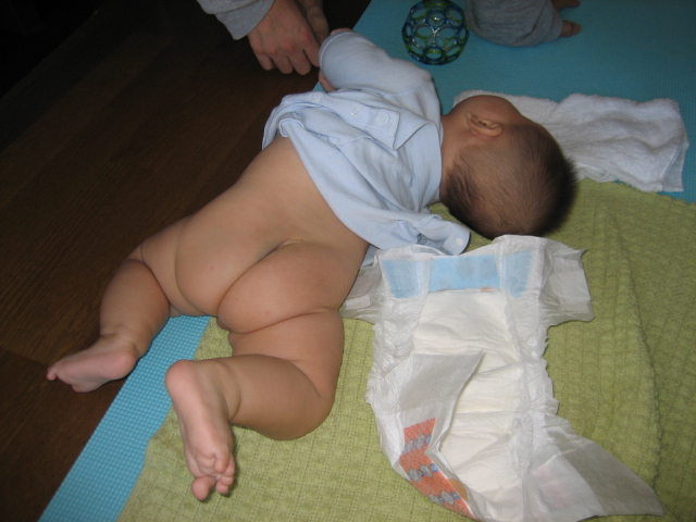 「おむつ(もしくは服)を着ている時はまだ無理か・・・