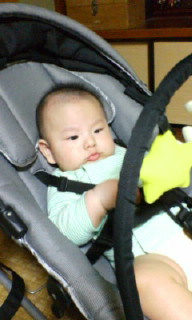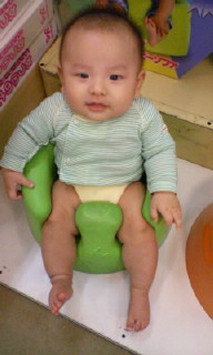 「バウンサーに座らせていると、寝返りトレーニングにならないなぁ」