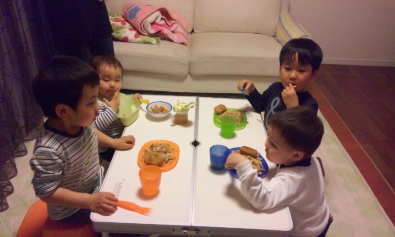 名目はMちゃんの誕生日会ですが、みんな子どもがいるので、上は小学校3年から下は5ヶ月のベビーまで大変な騒ぎでした
